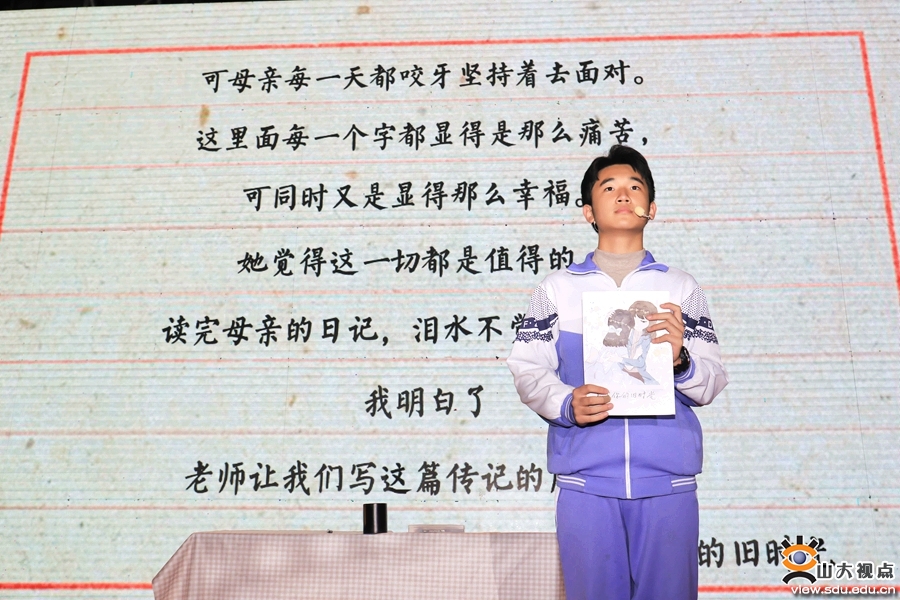 活动中,山大附中党委书记李玉亮为主火炬手点燃了青春火炬。20个班的火炬手传递火炬,现场气氛顿时沸腾。动听的歌声响起,大屏幕上显示出学生们的照片,把大家带入青春的回忆中。话剧《书写你的旧时光》环节,台上同学演技精湛,台下同学沉浸其中,倍受感动。