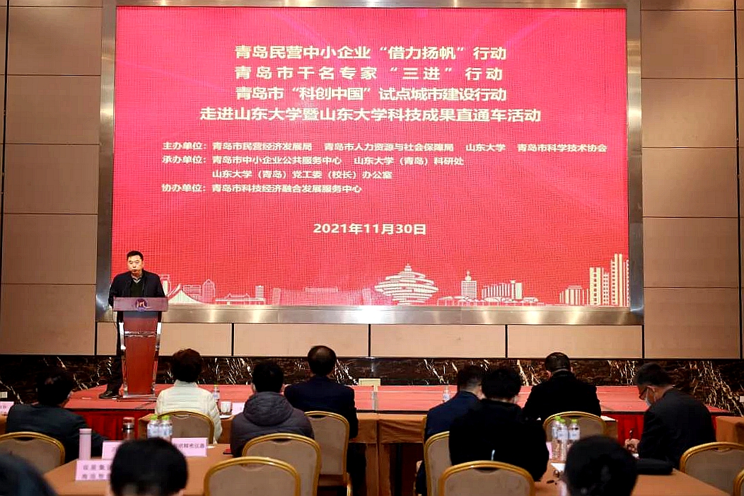 活动由青岛市中小企业公共服务中心副主任赵凤和主持。青岛市民营经济发展局、青岛市人力资源和社会保障局、青岛市科学技术协会、山东大学青岛校区相关负责人参加活动。