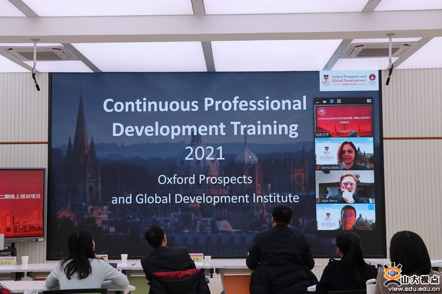 [本站讯]11月30日,山东大学与牛津大学合作2021年第二期线上培训项目开班仪式以集中线上会议形式举行。牛津大学项目办教务主任Ms Janina Duda、学生事务心理咨询中心主任Dr Alan Percy、项目办执行主管Dr Lana Delure,山东大学人事部部长、人才工作办公室主任刘健,山东大学国际事务部部长孙凤收等出席仪式。