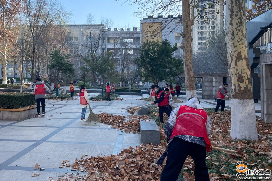 [本站讯]为消除交通隐患,方便广大师生出行,推进劳动教育实践活动常态化开展,十一月下旬至十二月上旬,校团委带领山东大学青年志愿者联合会在中心校区、兴隆山校区、洪家楼校区、趵突泉校区组织开展了多次落叶清扫劳动实践活动,累计1000余人次志愿者参与到劳动实践中,以实际行动引领青年学生扎实开展劳动教育,在日常生活中锻造劳动能力,培养劳动精神。