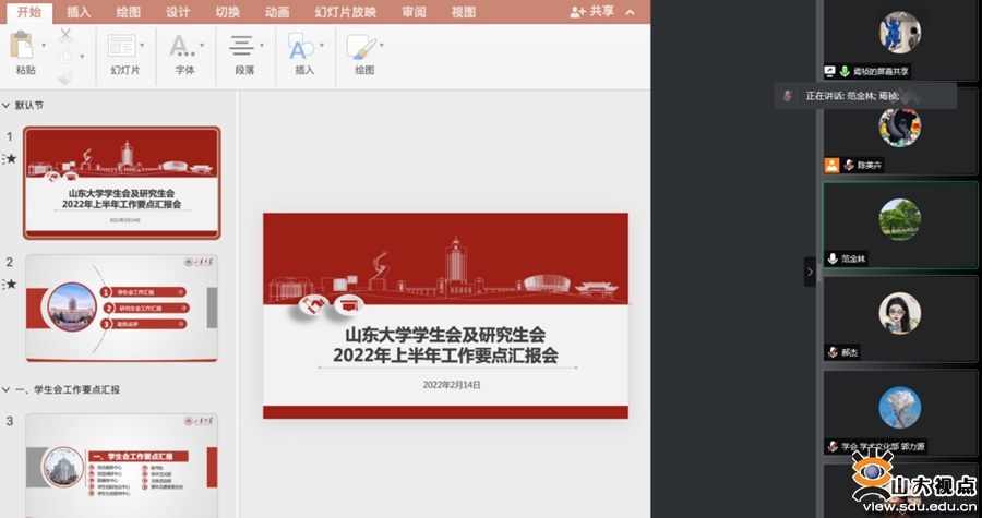 学生会、研究生会主席团全体成员围绕各自工作板块进行集中研讨,学生会、研究生会就春季学期服务同学工作作出规划:一是将围绕迎接党的二十大这一主线,结合庆祝建团100周年,打造校园宣讲、主题论坛以及系列主题教育活动。二是将制定出台并着力推进《山东大学学生会组织校院联动工作办法》等制度文件,完善校院联动工作制度,以“青山计划”“青年领袖研习会”“青年菁英峰会”等平台,推动校院班联动格局。三是将不断加强对人员与场地物资以及财务等各方面的管理,开展学生会组织建设和改革成效满意度调研,及时发现并整改问题。四是将完善优化品牌活动体系,采用校院联办的方式,实行活动立项制,扩大“山大杯”“Youth Talk青年说”“校园十大歌手”等影响力,突出劳育工作重点,不断完善权益工作机制。五是将进一步规范“十佳院会”“五四青年科学奖”等荣誉评审方式,加强专业化、科学化水平。