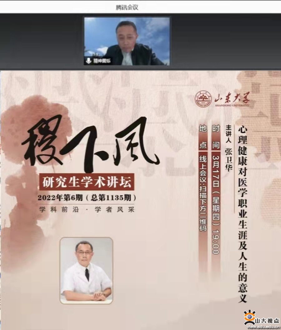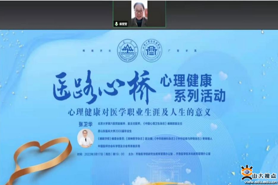 [本站讯]3月17日,齐鲁医学院举办 “医路心桥”心理健康系列活动首场讲座暨 “稷下风”研究生学术讲坛,邀请原山东医科大学校友、北京大学第六医院副编审、副主任医师张卫华教授讲解“心理健康对医学职业生涯及人生的意义”。齐鲁医学院研究生教育管理办公室主任秦莹莹出席讲座。