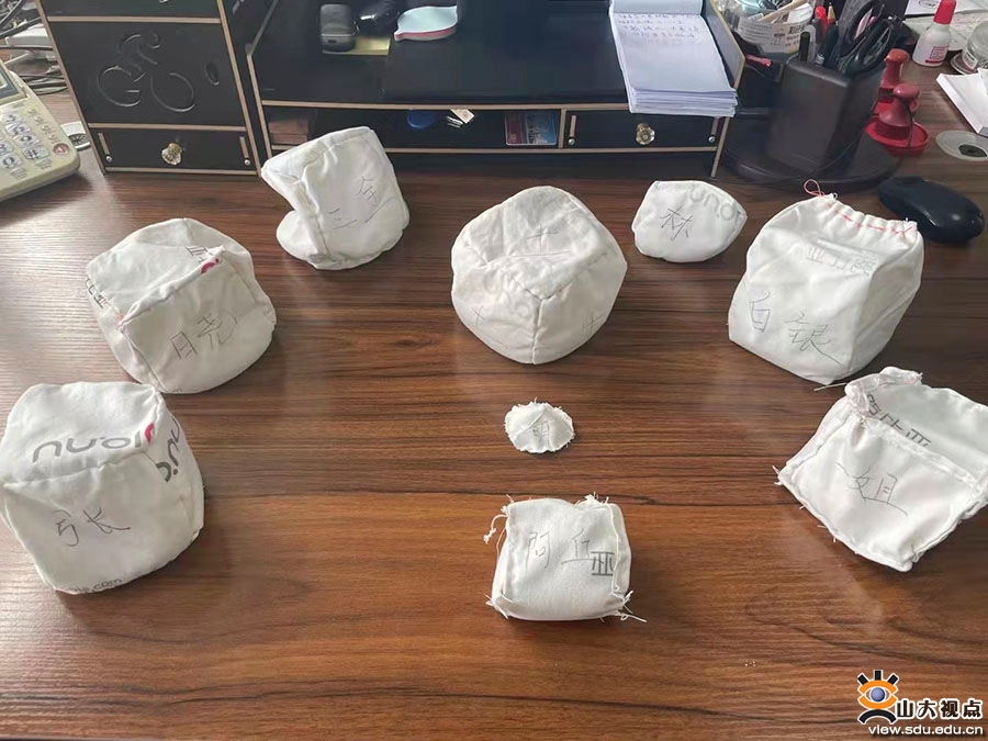 在了解到学生们有丢沙包的想法之后,能动学院辅导员李垚就立即组织了学生一起缝制沙包,“这样即能提升他们的动手能力,也能增进交流,还能满足同学们丢沙包的愿望,一举多得”。李垚在做志愿者储备动员的时候就和学生们说:请大家保持乐观心态,我们要做到:逢战则喜、敢打必赢、有我定胜!