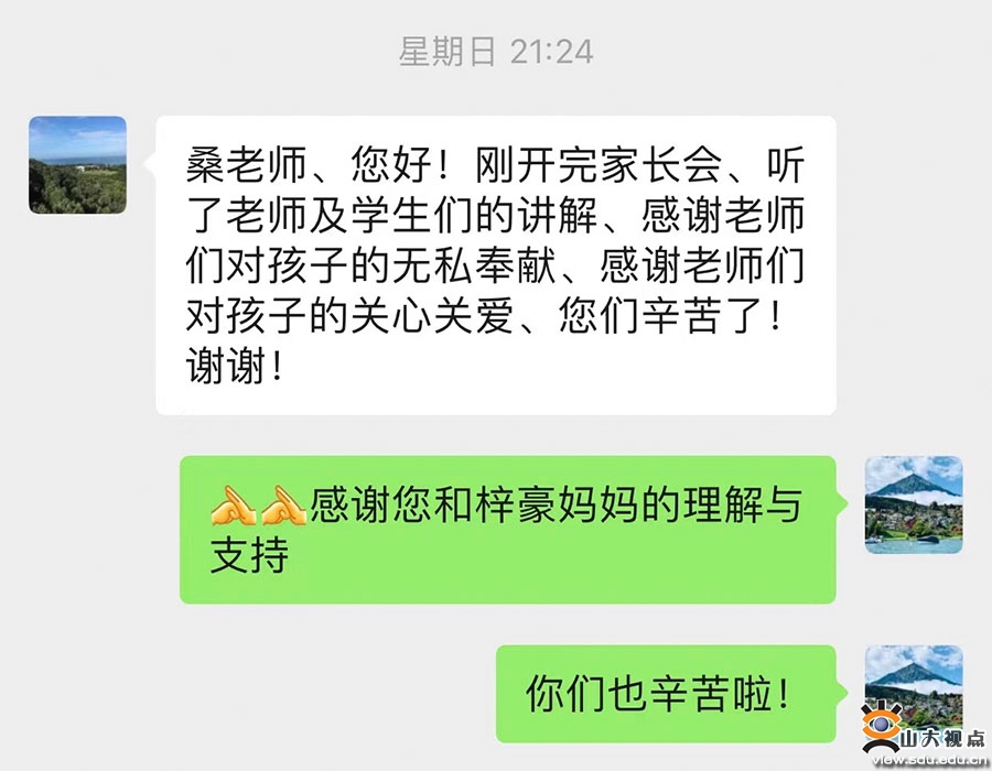 马克思主义学院周金龙不仅是一名兼职辅导员,还是一名志愿者,在他看来,陪着学生、一路同行,是学校每一位教职医务员工的份内工作和应尽责任,也是每一位教职医务员工的最大心愿。“尽职尽责、心系学生,确保学生健康成长,是我们每一位山大人的共同梦想。”