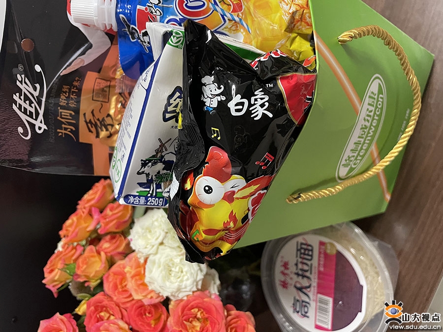 历史文化学院辅导员曹明明在住校的第一天上午,就有一个学生匆匆冲进了办公室:“给你,不够我那儿还有。我还要做核酸赶去上课,先走了。”留下曹明明对着零食“热泪盈眶”。“学生就像‘反哺’的孩子,几乎每天都会因为猝不及防的感动徘徊在‘破防’的边缘。疫情当前,我们确实是在共克时艰,但是某种意义上说,这也是一段如沐春风的奇妙旅程。”
