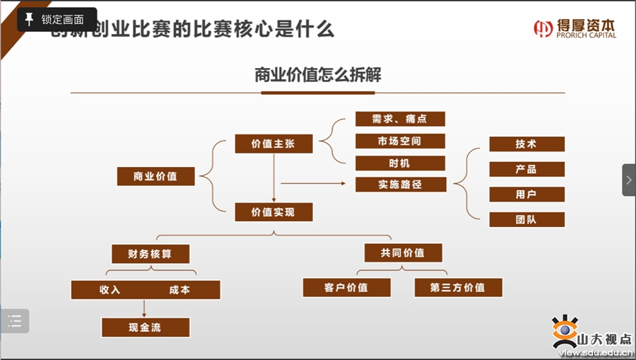 作为高校创新创业赛事多年评委,张伟民从同学们熟悉的“互联网+”赛事引入,结合赛事评分规则分析了赛事相较于真实创业在市场筛选、价值挖掘等多个角度的优势。同时从团队搭建、隔绝机制等维度向同学们提供了关于赛事的中肯建议和分析。