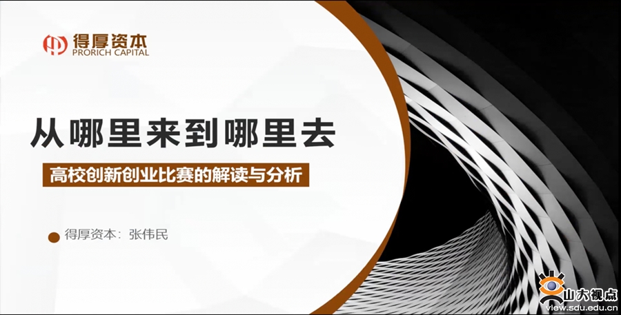 [本站讯]4月12日晚,“与未来同行”创业讲坛于线上举行。本次讲坛由共青团山东大学委员会主办,山东大学学生创新创业中心承办。讲坛特邀请得厚资本执行董事、青岛国投得厚私募基金管理有限公司董事长兼山大校友张伟民先生,为全体与会成员作了关于创新创业的精彩分享。论坛由校团委南东周主持。