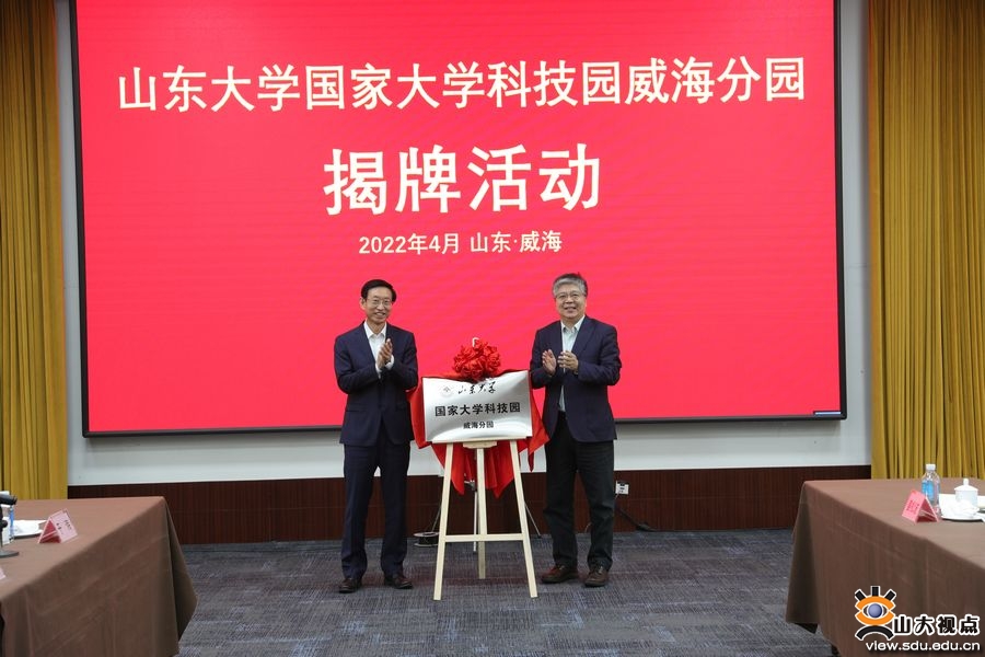 会上,林强、刘建亚为山东大学国家大学科技园威海分园揭牌。