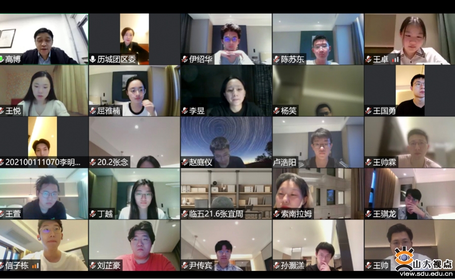 [本站讯]为认真学习宣传贯彻习近平总书记在庆祝中国共产主义青年团成立100周年大会上的重要讲话精神,关心关爱历城区隔离点的山大学子,5月10日,山东大学团委联合历城区团委,共同开展“青春心向党 百年再起航”线上主题团日活动,历城区区长高博、历城区团委书记李颖、山东大学团委书记姜炳刚出席活动,历城区隔离点的176名山大学子参加活动。