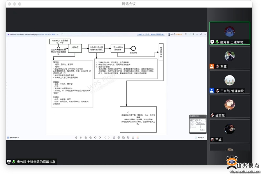 会上,四支社会实践队伍负责人就团队基本情况进行依次汇报。“经诚为民”宣讲团计划通过理论知识宣讲、社区流动摊位等方式,积极关注社会问题,广泛宣传党的十八大以来党和国家事业取得的历史性成就、发生的历史性变革。“曰文”党史宣讲团拟于山东省东营市、潍坊市、淄博市、威海市,河北省、河南省、福建省、湖北省、江苏省等6省9地,将党的百年历程与群众的生活经验结合起来,以线上线下相结合形式开展基层宣讲。“集思经社”团队将开展传统文化宣讲汇演、德治故事分享会和法制讲堂进社区活动。“讲法普典”团队计划通过调查了解各地居民对法律知识的了解程度,因地制宜地开展科普宣讲活动。