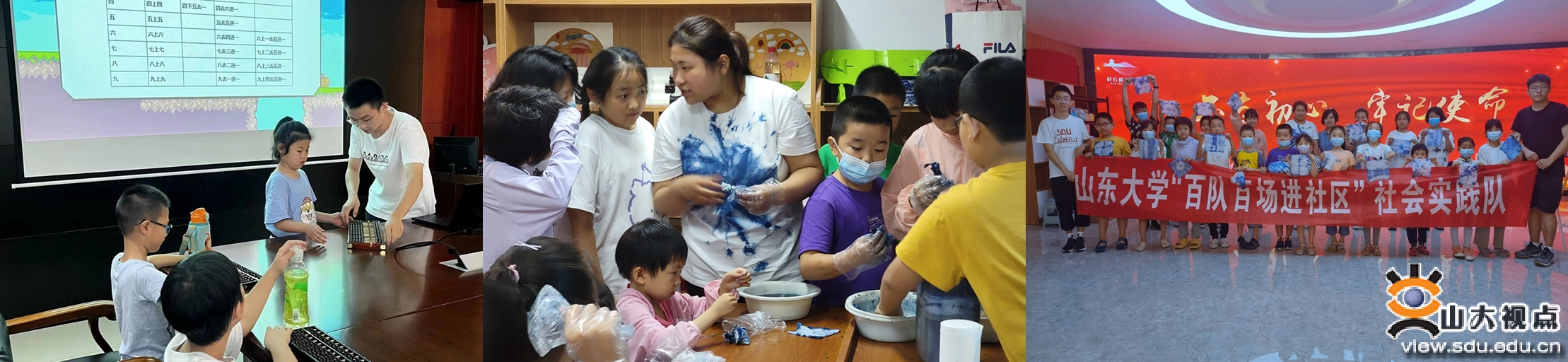 [本站讯]青春助文化弘扬,美育同实践相伴。为充分发挥社会实践育人功能和服务社会职能,实现在实践中以美育人、以文化人,以青年行动迎接党的二十大胜利召开,山东大学大学生艺术团将美育活动与社区实践相结合,组织“艺”路同行社会实践团队,深入参与山东大学“百队百场进社区”暑期社会实践专项,广泛开展系列社区文化活动,以山大青年的文化解读力、表现力、演绎力,让优秀传统文化“飞入寻常百姓家”,为建设社会主义现代化强国贡献山大力量。