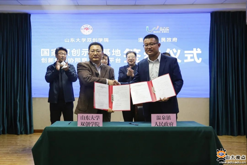 [本站讯]10月8日,山东大学创新创业学院-环翠区温泉镇国家双创示范基地创新创业协同育人实践平台签约揭牌仪式在威海市环翠区温泉镇举行。温泉镇党委书记黄松娟,温泉镇党委副书记、政法委员连呈辉,山东大学创新创业学院副院长邢建平、威海校区教务处副处长赵辉参加活动,会议由温泉镇副镇长李俊莹主持。