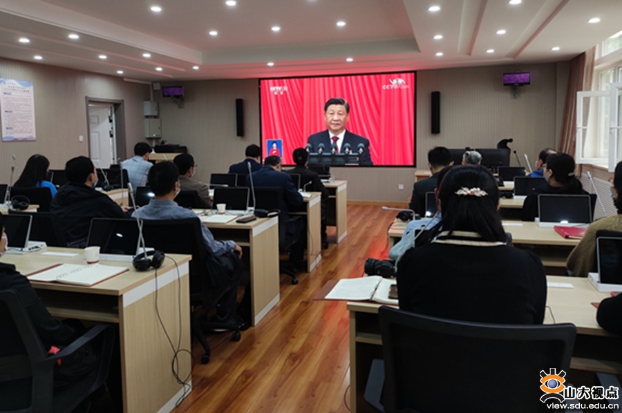 领会精神、全力践行,落实立德树人根本任务。东北亚学院院长刘昌明表示,党的二十大报告,内容丰富、博大精深,听后深受鼓舞。作为一名高等教育工作者,深深体会到近年高等教育事业所取得的巨大成就,深刻认识到党始终坚持进一步把握教育事业规律和人才培养规律,不断促进更高水平的教育公平,扎根中国大地,办好中国特色社会主义教育,培养了大批量社会主义建设者和接班人。今后工作中,将时刻牢记使命,始终保持积极进取、勇于担当的精神状态,始终坚守“为国育贤”初心,将立德树人贯穿教育工作全过程,努力培养新时代最优秀的本科生和最具创造力的研究生。数学与统计学院党委书记于振涛表示,听了习近平总书记的报告,更加深刻理解了“中华民族伟大复兴不是轻轻松松、敲锣打鼓就能实现的”这句话的深刻内涵。我们要在实践中坚决捍卫“两个确立”,不断增强“四个意识”、坚定“四个自信”、做到“两个维护”,深入学习贯彻习近平总书记关于教育的重要论述、重要批示指示精神,全面落实立德树人根本任务,精耕细作,为中国特色世界一流大学建设作出贡献,培养更多德智体美劳全面发展的人才。山东大学联合理学院党委书记梁奉军表示,学院要以党的二十大精神为指导,以国家战略需求为导向,全面贯彻党的教育方针,落实立德树人根本任务,发挥中外合作办学优势,着力培养堪当民族复兴重任的时代新人;同时更要在中外合作办学过程中,坚持和加强党的全面领导,增强文化自信,讲好中国故事、传播好中国声音。空间科学与物理学院党委副书记单登科表示,作为一名高校思想政治教育工作的基层党员干部,深切感受到党和国家事业发展的伟大成就,更有信心、更有底气带领广大青年学生坚定不移听党话、跟党走,引导青年学生脚踏实地,敢想敢为、善作善成。艺术学院(威海)副教授郑岩表示,通过认真聆听报告,我深刻认识到作为一名民主党派成员,要自觉按照党和人民的要求锻炼自己、提升自己。既要争做“四有”好老师,更要紧密围绕在党中央周围,为新时代教育领域发展建言献策,履行参政议政的职责,为实现中华民族伟大复兴的中国梦贡献力量。马克思主义学院(威海)副院长马秋丽表示,作为马克思主义理论学科教学研究人员,我们备受鼓舞又使命在肩,要以高质量的研究成果为构建新时代哲学社会科学自主知识体系作出自己的努力。同时,将党的二十大精神融入教学,引导培养青年大学生,立志做有理想、敢担当、能吃苦、肯奋斗的新时代好青年,成为堪当民族复兴重任的时代新人。商学院副院长陈学胜表示,立足新时代,应对新挑战,面向新征程,要继续做好教书育人和科研创新工作。坚持马克思主义指导地位,全面贯彻党的教育方针,坚持社会主义办学方向,落实立德树人根本任务。深化人才培养模式、教学内容及方式方法等方面的改革,不断提升教书育人本领,为培养德智体美劳全面发展的社会主义建设者和接班人作出贡献。翻译学院副院长唐鑫梅表示,党的二十大报告提出的新思路、新战略、新举措,将深刻影响着中国和世界的未来。作为外语学科的教育工作者,我们应该提高政治站位,培养学生的家国情怀,为国家和社会培养既具有良好的外语素养,又具有家国情怀和国际视野,堪当民族复兴重任的时代新人。