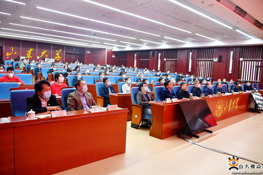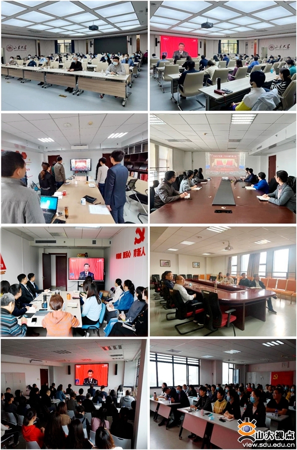 [本站讯]10月16日上午10时,中国共产党第二十次全国代表大会在北京人民大会堂隆重开幕。山东大学机关近百名党员干部在明德楼二层报告厅集体收看开幕会盛况。