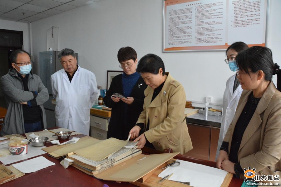 [本站讯]根据山东省文化和旅游厅统一部署,10月20日上午,由山东省图书馆副馆长、山东省古籍保护中心副主任李勇慧任组长的省文旅厅专家组一行3人,前来山东大学开展全国古籍重点保护单位现场复核工作。图书馆馆长赵兴胜以及特藏文献研究所全体成员参加相关活动。
