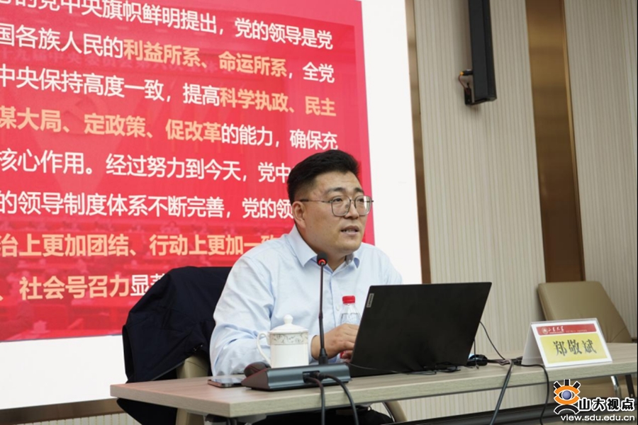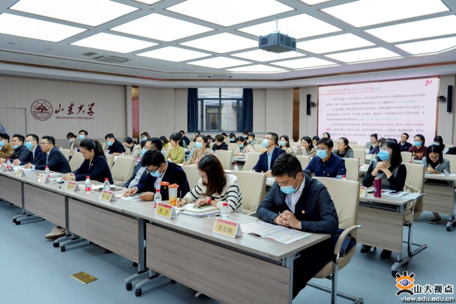 [本站讯]10月21日上午,山东大学一校三地共青团系统组织学习党的二十大报告专题会,深入领会报告中的新表述、新概念和新论断。马克思主义学院副院长郑敬斌作专题报告。会议由山东大学团委书记姜炳刚主持。各校区团组织负责人、学生组织代表参加学习。