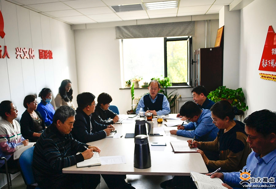 在听取大家发言后,张永兵强调,学习宣传贯彻党的二十大精神,是学校当前和今后一个时期首要政治任务,要提高政治站位,强化思想认识,坚定拥护“两个确立”、坚决做到“两个维护”,以习近平新时代中国特色社会主义思想为指导,做好学习传达、理论阐释、宣传教育、贯彻落实等各方面工作。一要认真学习党的二十大报告,深刻领会其精神实质和内涵要义。要深刻把握报告提出的大会主题、党的使命任务,报告每一部分的内容及其之间的有机联系,深刻领会报告中蕴含的世界观、方法论,深刻把握新时代新征程中国共产党的使命任务,不断谱写马克思主义中国化时代化新篇章。二要把党的二十大精神宣传贯彻好。对照报告内容,尤其是报告对教育、高等教育、党员同志、青年提出的新任务新要求,找准宣传重点,明确报道方向,全面生动宣传报道全校学习贯彻党的二十大精神的创新做法和生动实践,讲好山大故事、传播好山大声音,引导师生医务员工坚定信心、同心同德,埋头苦干、奋勇前进,以实际行动助力学校“双一流”建设。三要把学习的落脚点切实落到宣传思想文化工作实处,要践行举旗帜、聚民心、育新人、兴文化、展形象的使命任务,更好地完成新形势下宣传思想工作,要牢牢掌握党对意识形态工作的领导权,坚定文化自信自强,推进中华文化的国际传播力影响力;进一步践行社会主义核心价值观,深化师德师风建设,办好人民满意的教育,创新驱动发展,扎实推进新时代人才强国战略。