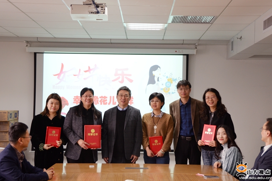 [本站讯]3月8日,人事部(人才工作办公室)以“幸福像花儿一样”为题举办庆祝第113个国际劳动妇女节系列活动,为全体女职工送上节日祝福与慰问。山东大学副校长吴臻出席活动并与人事部部长刘健共同为妇女工作先进个人及工会工作积极分子颁发证书。