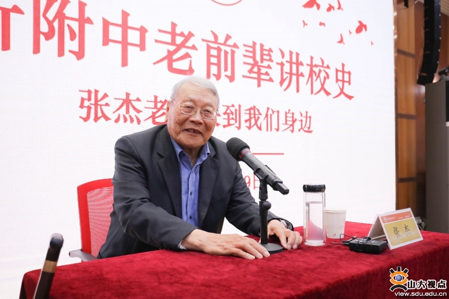 [本站讯]为进一步在全校深入开展学习贯彻习近平新时代中国特色社会主义思想主题教育,充分利用老党员、老校友等红色资源组织广大党员干部、教师开展学习,砥砺理想信念和初心使命,近日,参与创办山东大学附设工农速中的张杰教授到山东大学附属中学为附中老师们讲述学校的“前世今生”。山大附中五个校区500多名教职工在主会场和视频分会场共同聆听来自学校老前辈的故事。