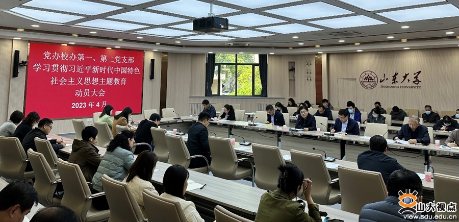 [本站讯4月25日,党办校办第一、第二党支部召开学习贯彻习近平新时代中国特色社会主义思想主题教育动员部署会。党办校办第一党支部书记王浩主持会议并作动员讲话。党办校办第二党支部书记郭晓东传达机关党委关于深入开展学习贯彻习近平新时代中国特色社会主义思想主题教育实施方案。