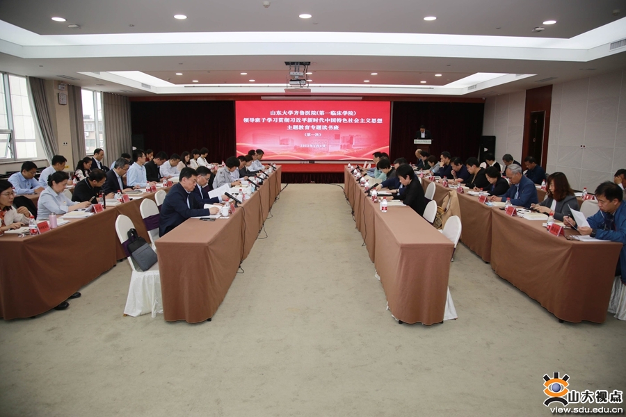 [本站讯]5月4日,山东大学齐鲁医院(第一临床学院)举办领导班子学习贯彻习近平新时代中国特色社会主义思想主题教育第一次专题读书班。山东大学第六巡回指导组组长、党校常务副校长、党委组织部副部长罗建军出席会议。医院党委书记、主题教育领导小组组长侯俊平出席会议并作总结讲话,院长陈玉国主持会议。