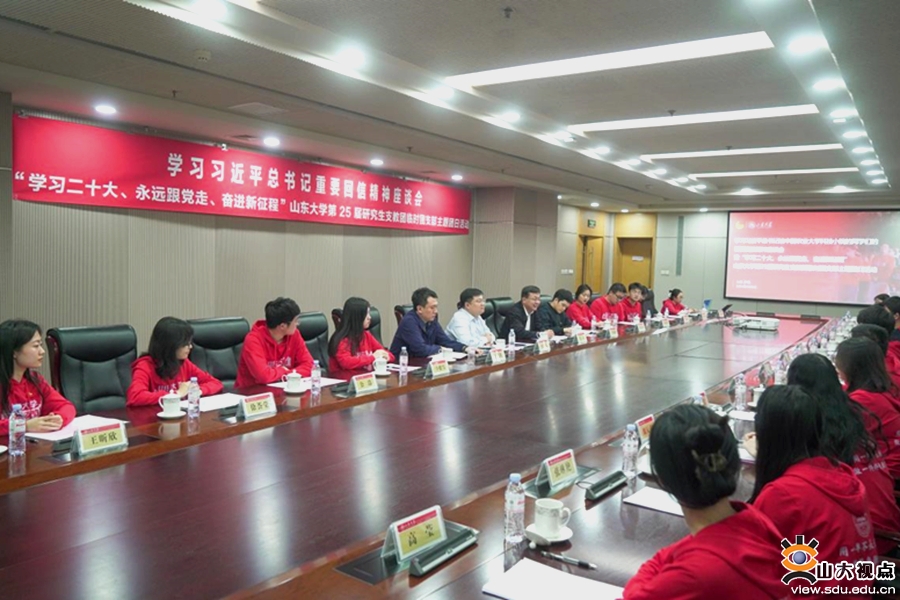 [本站讯]为深入学习贯彻习近平总书记给中国农业大学科技小院的学生重要回信精神,5月8日,山东大学举行学习贯彻习近平总书记重要回信精神座谈会暨“学习党的二十大、永远跟党走、奋进新征程”山东大学第25届研究生支教团临时团支部主题团日活动。团中央维护青少年权益部部长岳伟出席活动并讲话,团省委副书记盛夏参加活动。山东大学党委常委、组织部部长曲明军会见了岳伟、盛夏一行。