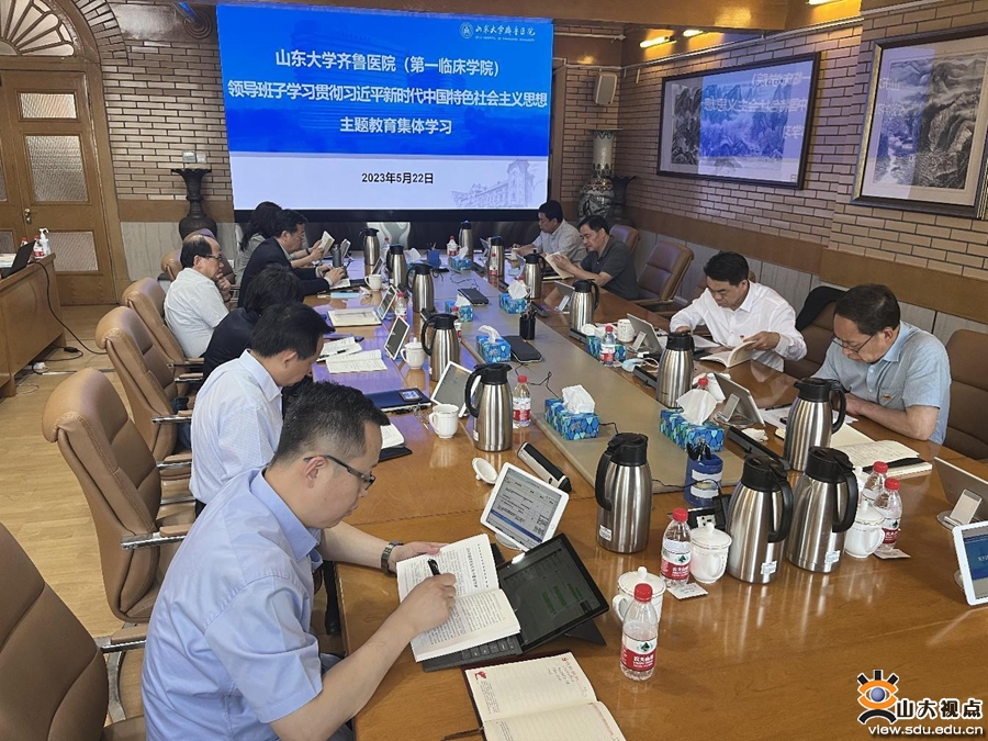 [本站讯]5月19、22日,山东大学齐鲁医院(第一临床学院)举办学习贯彻习近平新时代中国特色社会主义思想主题教育领导班子第三次专题读书班。医院党委书记、主题教育领导小组组长陈鑫,院长陈玉国出席并主持会议。