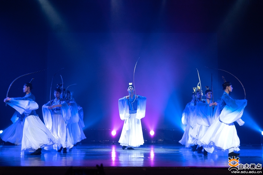 融美育才,以传统文化厚植家国情怀。近年来,校区紧抓“舞蹈编导”国家级一流本科专业建设这一契机,不断更新教育理念,以中华传统文化与胶东地域文化为特色,通过协同育人与实践创新教学深入推进育人内容方式的转变。由艺术学院(威海)舞蹈专业学生编排的舞蹈《此画怎讲》先后在中心校区、威海校区上演。学生们以汉代舞蹈的形式、刚柔并济和棱角分明的风格特点,实现汉画舞姿由“静态美”向“动态美”的转变,将汉代舞蹈画生动形象地展现在了观众的面前,充分彰显了经典艺术的情感震撼力和思想感染力。艺术学院(威海)教师曲笛鑫在谈到编排舞蹈初衷时说:舞蹈艺术具有独特的育人魅力,将其与传统文化结合起来,引导学生厚植家国情怀,坚定文化自信,从生动活泼的舞蹈中捕捉正能量要素,理解舞蹈所蕴藏的时代意义与育人价值。