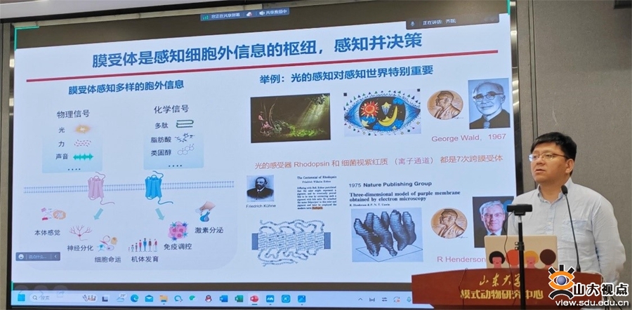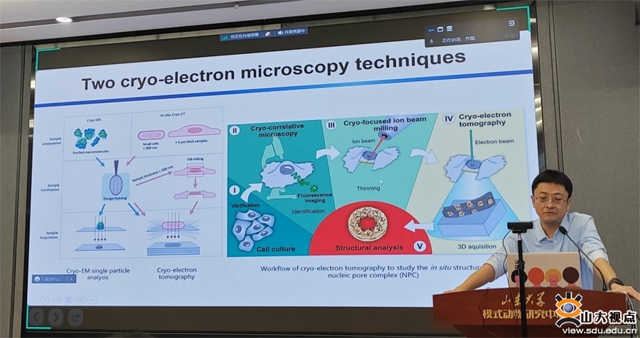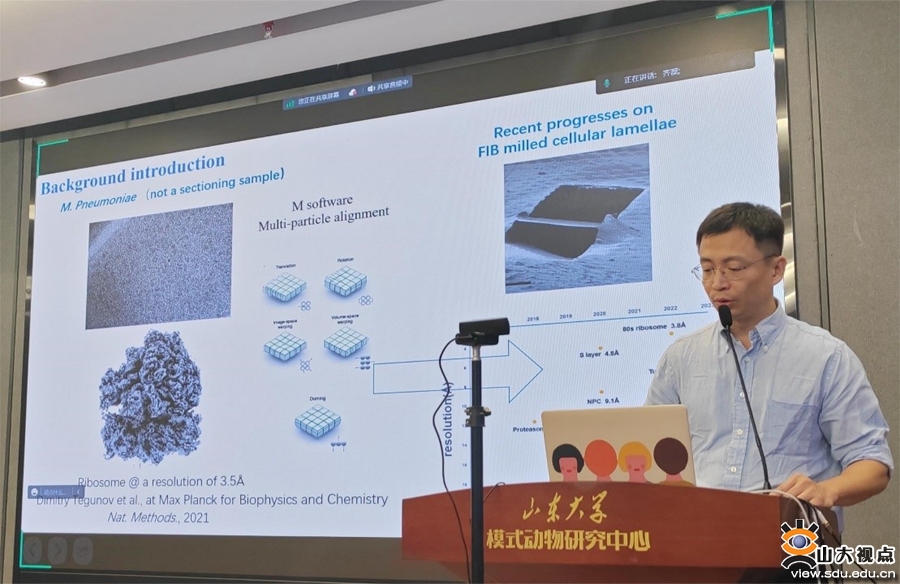 讲座由山东大学资产与实验室管理部部长占金华开场主持。占金华首先介绍了本次讲座的主题与内容,他表示,自测论举办以来,获得了各学科领域的广泛关注,影响力显著扩大。山东大学冷冻电镜平台是学校统筹建设的大型仪器公共技术平台,于今年初投入试运行,已经取得了较好的科研支撑成果。他希望平台在各位专家学者的关注下发展得更好。
