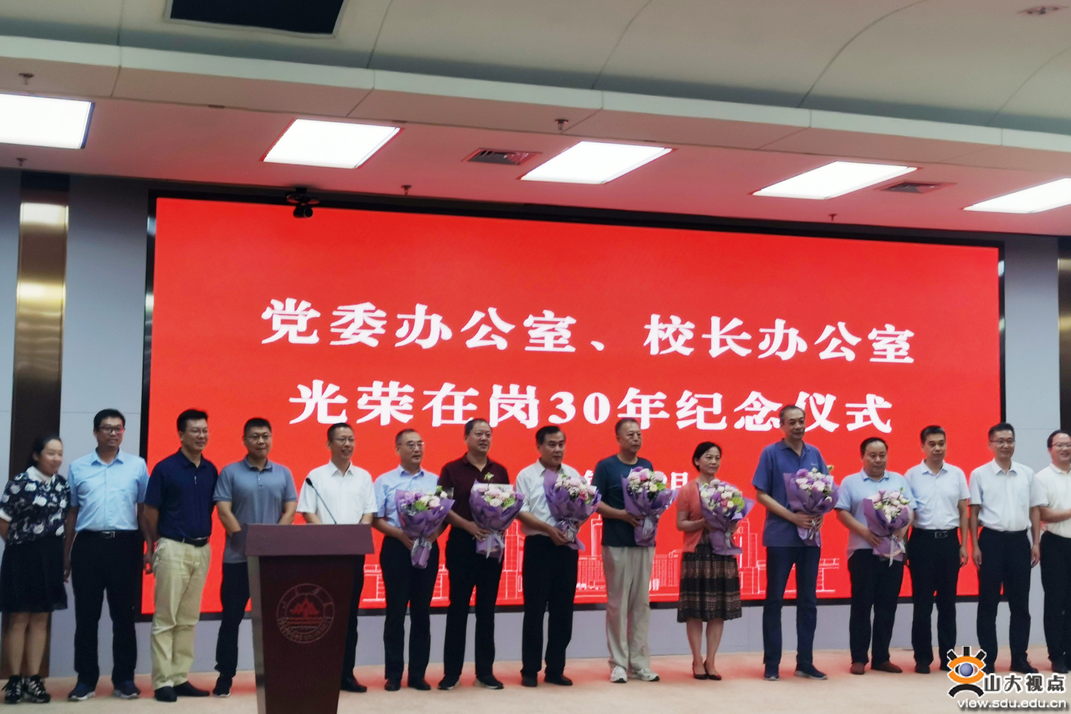 [本站讯]9月19日,党委办公室、校长办公室召开工作会议,并为在岗30年教职工举行纪念仪式。会议由党办校办主任刘德宝主持,全体工作人员参加会议。