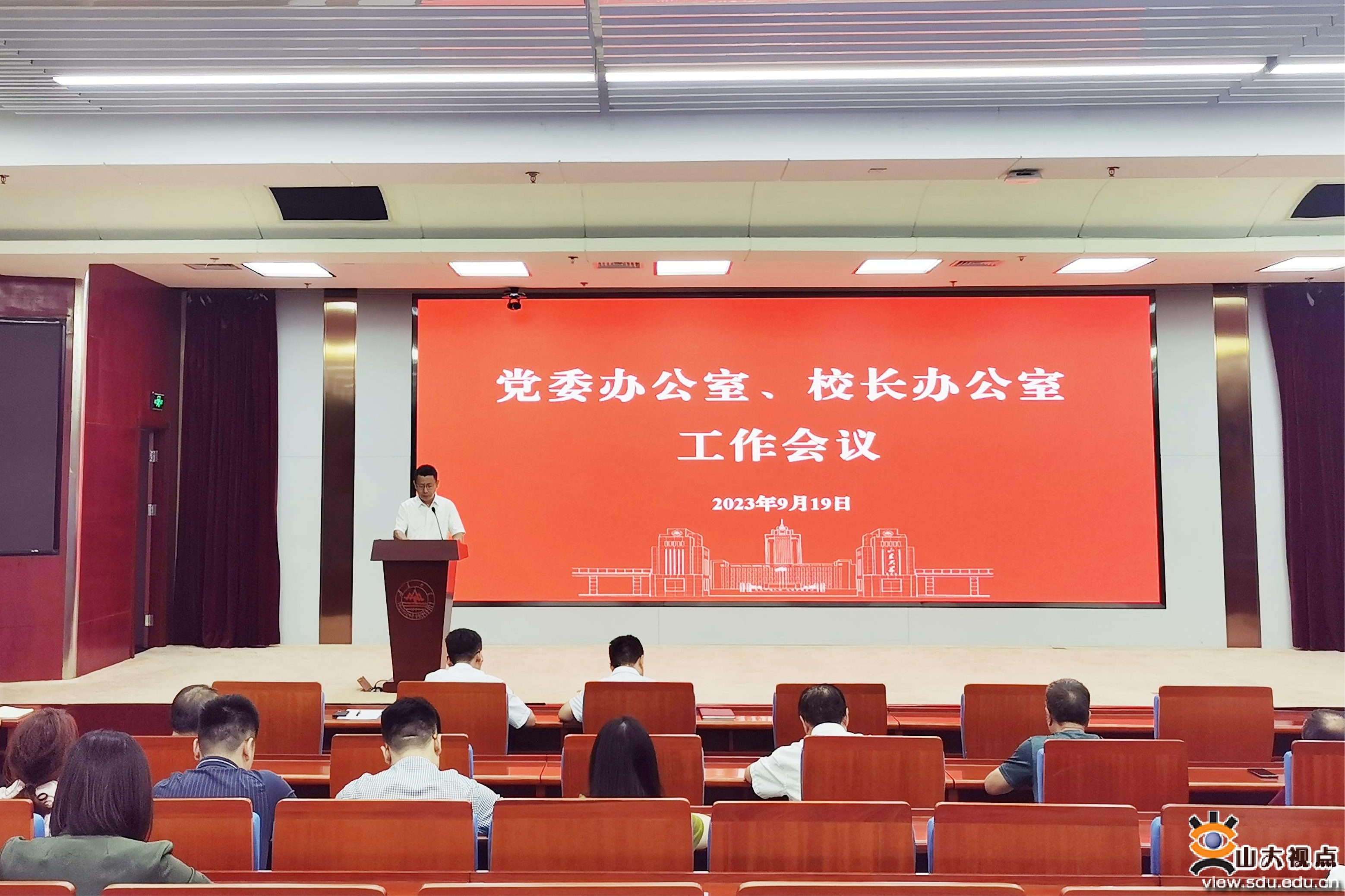 党办校办副主任管晓亮带领大家重温《山东大学2023年秋季学期工作要点》,对党办校办秋季学期牵头负责的工作进行具体解读,各科室要坚持围绕学校中心工作,聚焦办公室主责主业,构建起清晰的责任链条和严密的工作流程,切实强化履职能力。