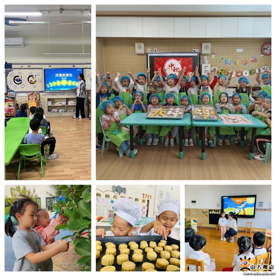 “童心邀明月 暖暖中华情”。孩子们通过讲故事、看图片等方式一起分享交流中秋节的来历及美好习俗;自己动手制作谜语挂在树枝上;用小小的画笔,设计出心中独一无二的花灯;拿起独特的模具,亲手制作美味的月饼。孩子们知中秋、悦中秋、品中秋、绘中秋,畅享中秋之乐,感受幼儿园大家庭的团结、和睦与快乐。