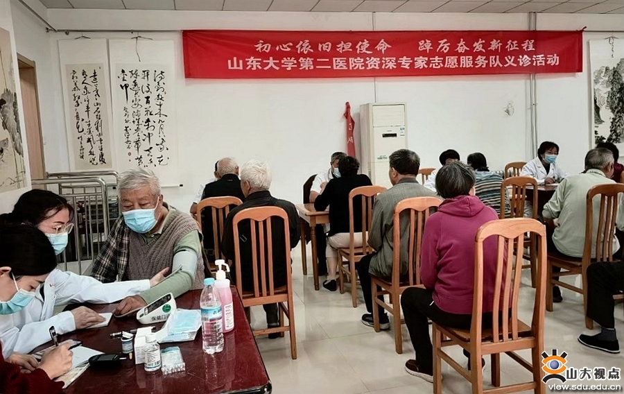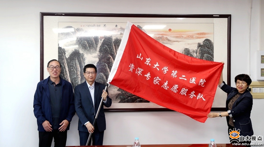 [本站讯]为贯彻落实积极应对人口老龄化国家战略,弘扬中华民族尊老敬老爱老传统美德,结合学校“敬老月”系列活动,10月17日,离退休工作处联合山东大学第二医院 “太阳正红”资深专家志愿服务队开展首场健康义诊活动,并在千佛山校区离退休职工活动中心为志愿服务队授旗。