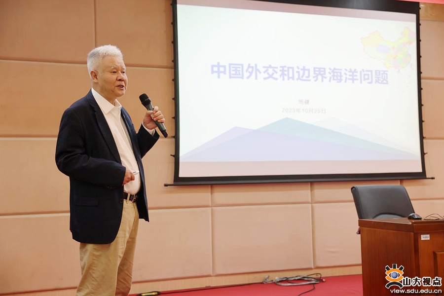 [本站讯]10月25日下午,由外交部、教育部、中国海洋发展基金会联合主办的“第二期周边涉海外交知识进高校”系列活动第一场在山东大学洪家楼校区举行。外交部原海洋事务代表周健参赞为山大师生作“外交工作和中国的边界海洋问题”主题报告,山东大学党委副书记王君松出席活动并致辞。