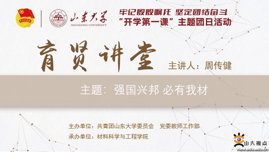 本次“育贤讲堂”活动面向一校三地,由共青团山东大学委员会和党委教师工作部联合主办,各学院团委积极承办,是加强青年思想引领的重要措施。立足学科专业背景,各学院以“育贤讲堂”为主题,创新开展党委书记思政课、专业介绍座谈会、学院师生见面会等活动,引导团员青年做社会主义核心价值观的坚定信仰者、积极传播者和模范践行者。此次活动覆盖全校全体团员青年,共举办了61场“育贤讲堂”专题活动,以多种形式帮助广大团员青年熔铸“山大基因”,在思想碰撞中深化认识,在学思践悟中激发动力,有效把思想政治教育、教学的工作要求贯穿到育人育才各环节,全员全过程全方位地引领团员青年立志气、强骨气、蓄底气。