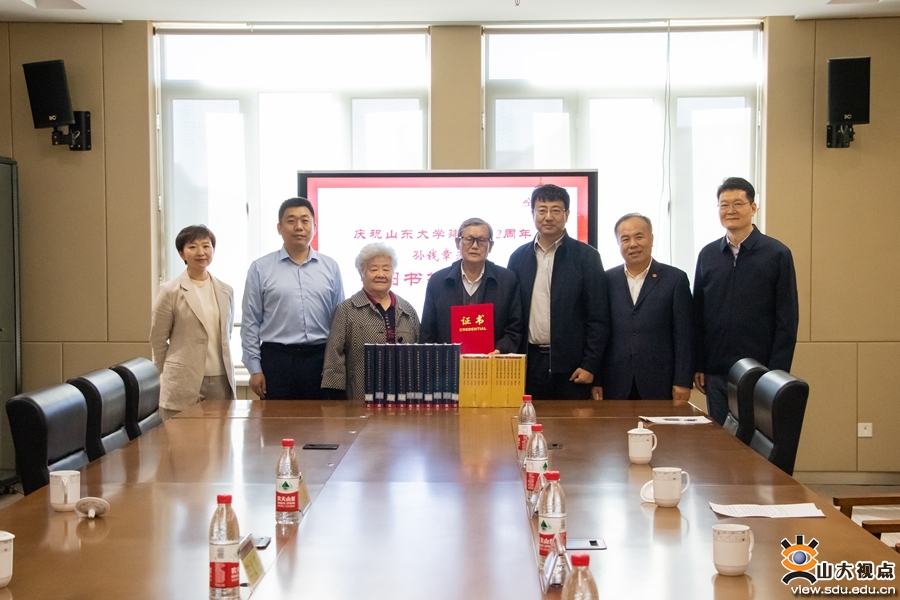 [本站讯]10月27日,中共中央党校原校务委员会委员、校学术委员会委员、函授学院院长、山东大学校友孙钱章著作捐赠仪式在山东大学青岛校区图书馆举行。山东大学校长助理、青岛校区党工委书记邢占军出席活动并讲话。山东大学图书馆党委书记徐关众主持仪式。邢占军向孙钱章教授颁发捐赠证书。此次孙钱章教授向山东大学图书馆捐赠《孙钱章管理科学研究与探索之路》四套和《中国历代治国方略文选》八套共计76册图书。