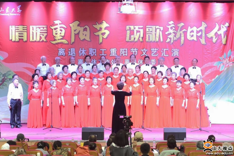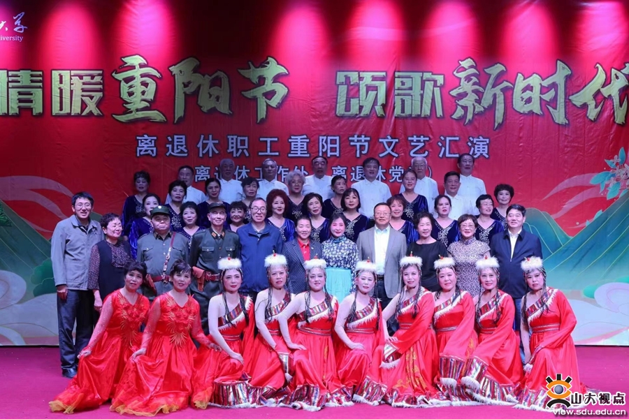 [本站讯]金秋又重阳,晚晴暖夕阳。为进一步弘扬中华民族尊老敬老爱老的传统美德,展现学校离退休老同志积极向上的精神面貌,10月26日,山东大学在千佛山校区举办“情暖重阳节 颂歌新时代”离退休教职工文艺汇演,300余名老同志欢聚一堂,共度重阳佳节,庆祝建校122周年。山东大学原党委副书记方宏建、离退休处处长兼离退休党委书记郭举修及离退休处有关负责人参加活动。