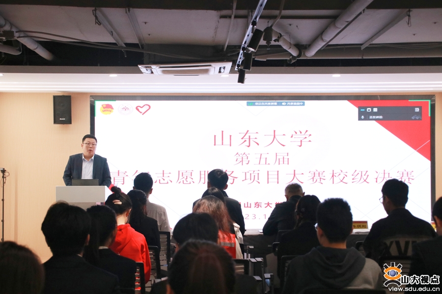 [本站讯]10月27日,“青春志愿行,奋进新时代”山东大学第五届青年志愿服务项目大赛决赛在中心校区举行。决赛邀请山东省志愿者行动指导中心副主任陈宝军,济南市志愿者行动指导中心副主任刘江,山东广播电视台青年及志愿服务工作组织领导小组副组长、团委书记马凯,山东省青年志愿者协会专业发展委员会秘书长卢济南到会评审。山东大学团委书记姜炳刚参加并致辞。