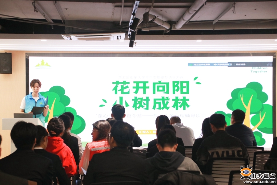 大赛启动以来,经过项目申报、学院初审、校级复审,共有25个优秀项目入围决赛。“聚星计划”项目响应国家政策号召,普及孤独症相关知识,提高全社会对孤独症群体的关注度,为孤独症儿童提供力所能及的帮助。“童心园”项目筑梦夏令营以“521N”作为服务模式,围绕“爱心赋能,启智润心”服务宗旨,聚焦“包容”“感恩”“合作”“立志”“开拓”五大教育专题,促进孤贫儿童实现多维度多方面发展。“‘旅’你一起”项目以济南市文旅为发力点,提升来济游客以及本地游客旅游出行的文化性、知识性,维护景区相关秩序或进行讲解等,打造更良好的文旅体验,以志愿服务项目促进济南市旅游业的发展。比赛现场,各团队分别从创新性、发展性、完整性等方面进行项目答辩与路演展示,专家从项目创意度、项目可持续性、社会需求度、展示完整度四个维度进行提问并作评审。