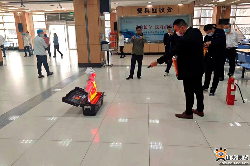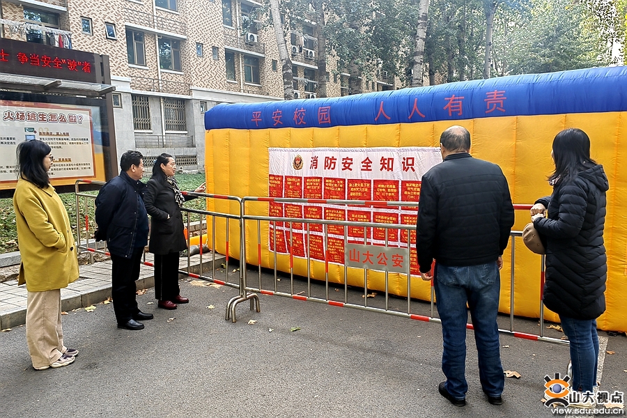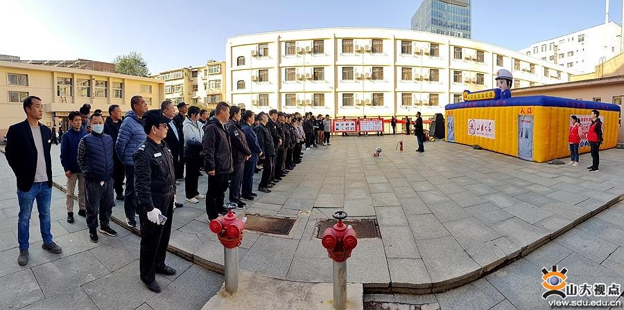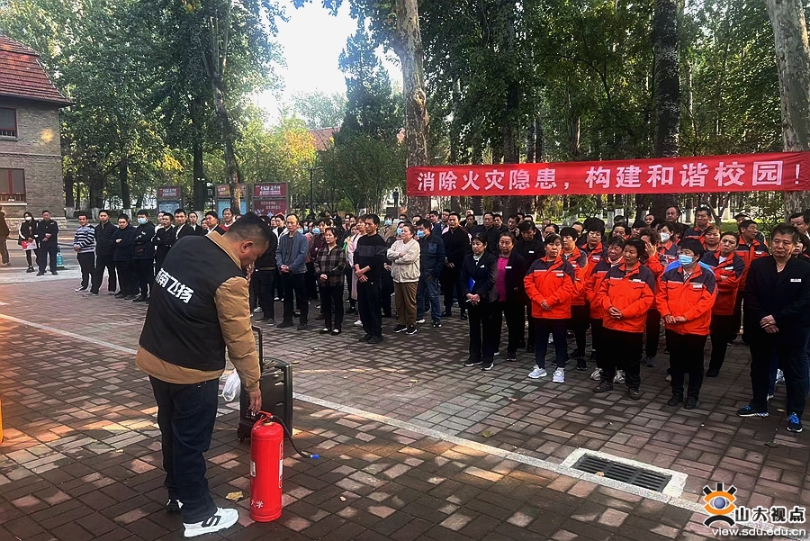 多措并举提高能力,助力平安校园创建。在第32个全国消防日来临之际,为深入贯彻总体国家安全观,强化安全教育培训,11月7日下午,千佛山校区管理办公室组织全体职工、校区和社区物业100余名员工在校区教学区北院东开水房前广场开展了“预防为主,生命至上”主题模拟逃生和灭火培训活动,活动分为消防知识宣讲、模拟逃生体检和灭火培训三个阶段,增强了全员消防安全意识和自救能力。11月9日,趵突泉校区管理办公室组织开展了消防安全警示教育培训演练活动,通过观看视频、现场讲解、逃生模拟演练等形式,全员学习了消防知识、消防器材的使用方法以及消防逃生技能和注意事项等,演练现场大多数员工能有效组织、迅速对火灾事故警报做出反应,大部分救援小组负责人能有效组织本组组员疏散、警戒和投入灭火行动中,培训和演练极大提高了全体职工和物业全员消防意识,增强了物业员工在紧急应变能力和自我防护能力,进一步夯实了服务保障的安全基础。
