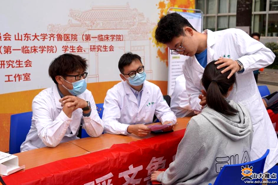 本次健康义诊活动得到了同学们的积极响应和热烈反馈。山东大学齐鲁医院(第一临床学院)劳动服务队将一如既往用自身专业所长增强人民群众健康意识,不断扩大服务范围,为助力健康中国不懈奋斗。