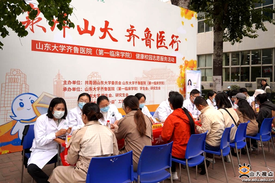 [本站讯]为推动“健康山大”建设,引导师生树立健康理念,山东大学齐鲁医院(第一临床学院)劳动服务队活动于11月3日在山东大学洪家楼校区举办了“泉泽山大,齐鲁医行”健康校园志愿服务活动。本次活动由学生团总支书记魏廷义带队,校区200余名师生参与活动。