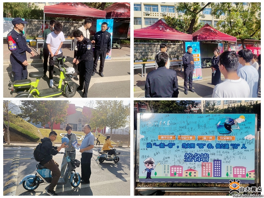 强化宣传教育,提升安全意识。积极联合属地交警大队、驻区学院、学生社团等单位,先后开展了主题党日共建、安全骑乘知识宣讲、电动车安全宣传材料及小礼品发放、电动车挂牌及业务咨询、安全文明骑行倡议签名等一系列校园交通安全宣传教育活动。同时,还在校园内设置了非机动车交通安全宣传栏与宣传立牌,通过大屏幕循环播放非机动车交通安全警示教育视频,营造出浓厚的交通安全宣传氛围,增强了师生的交通安全意识和法制意识。