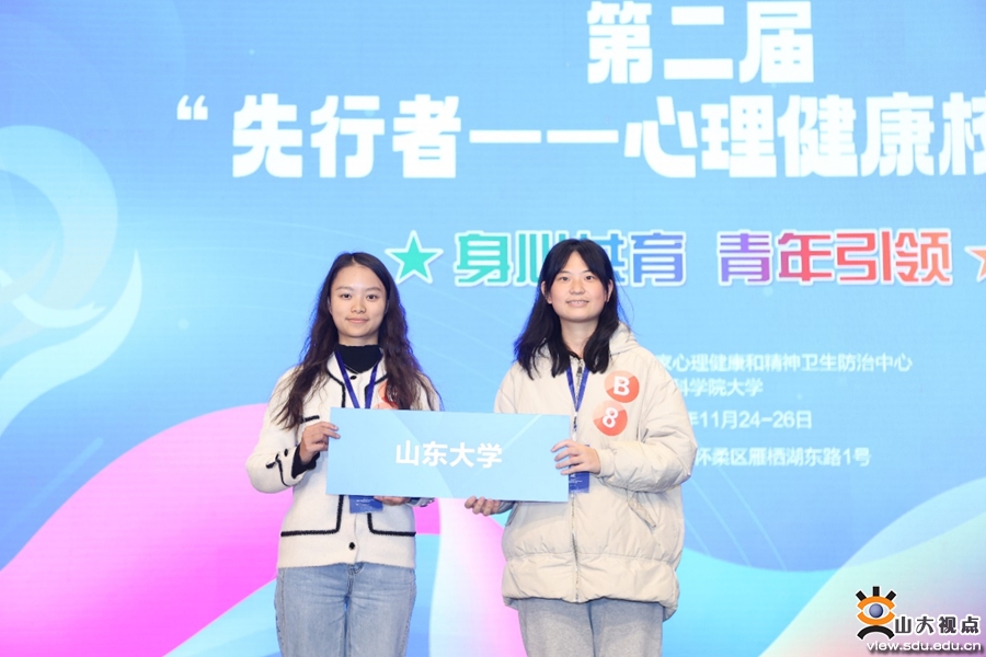[本站讯]11月26日,由国家心理健康和精神卫生防治中心和中国科学院大学共同主办、全国43所高校联合承办的第二届“先行者——心理健康校园行”活动闭幕式在中国科学院大学举办,标志着为期两个月的心理健康打卡活动正式落下帷幕。活动中,山东大学作为43所承办高校之一,积极动员校内学生参与、组织开展特色活动,最终在全国排名中获得学校组第三名,并荣获“最佳组织奖”。