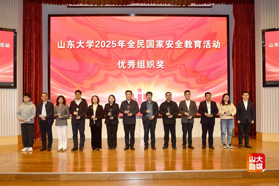 李向阳、张帅为2025年山东大学全民国家安全宣传教育系列活动的优秀组织单位和获奖个人代表颁奖。