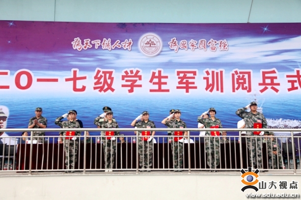 2017级军训阅兵式在雄壮激昂的《中国人民解放军军歌》中落下帷幕。山东大学(威海)教务处、学生工作部、人民武装部等部门负责人,各学院党政主要负责人、分管学生工作书记(副书记)及2017级学生辅导员参加了阅兵式。