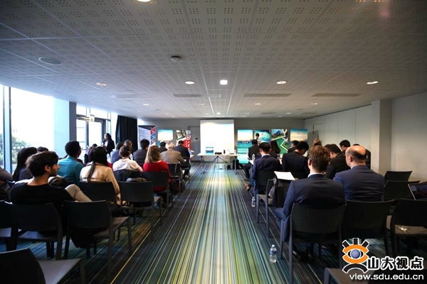 法国巴黎站是大赛欧洲赛区初赛第二站,吸引了6个法国高新科技创新创业项目报名参赛,参赛选手均是法国本地的创业者、学者和留学生等。山东大学、蓝谷管理局、中国驻法使馆科技处、法国本地投资人和学者等共同组成了评委团,在参赛团队3个多小时的激烈角逐后,评出海沙处理等3个项目团队获得前往青岛参加总决赛的资格。法国当地的创业者、学生以及山东大学法国校友会的部分成员等数十名观众观摩了本次活动。