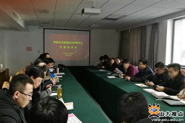 [本站讯]寒假将至,为把党和国家对家庭经济困难学生的关怀落实落细,确保学生度过一个温暖祥和的假期,山东大学组织了寒假走访慰问家庭经济困难学生活动。1月23日下午,党委学生工作部在中心校区举行寒假走访家庭经济困难学生行前动员会。学工部副部长傅艺娜出席并主持会议。