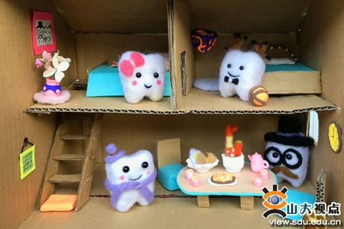 比赛中,参赛者按照抽签顺序依次展示了自己独具特色的作品。参赛者绝妙的想象力与巧妙的设计,将简单的物品(太空泥、毛毡、橡皮泥甚至废纸箱等)变成了栩栩如生、可爱灵动的牙齿,变成了一个个充满趣味、引人入胜的故事。通过牙齿模型演绎的小故事,告诉观众平凡而富有力量的忠告与道理。其中,有的组用毛毡和废弃纸板为原材料设计牙齿,以极为精致的视频方式讲述了牙齿小弟的危机,提醒大家爱牙护牙。有的学生用平面的纸片塑造立体的牙齿、牙刷等,创造出一个有趣又富有深意的故事,通过这样的设计,呼吁大家学会用绿色环保又充满创造力的手工等方式去表达爱、传递爱。最终,2016级口腔医学五年制学生冯素素组获得比赛冠军。