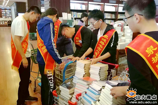 活动中,学院各班认真策划,采用“以大带小、协作共进”的模式,由2016级学生与2017级学生协作完成。同学们将各种奇思妙想与志愿服务结合,以新颖的方式、有趣的途径展现“奉献、友爱、互助、进步”的志愿精神。其中,一班采用行走捐步的方式,号召同学们每天打卡计步,并于3月31日组织了在泉城广场举行的捐步活动。同学们在锻炼身体的同时为公益事业注入了活力。四班走进书店,结合自己的阅读经历将更多好书推荐给读者,为建设“文化泉城”贡献自己的微薄之力。